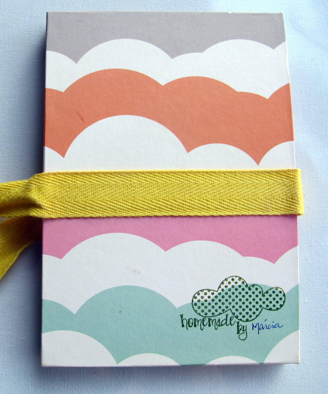 Eu optei por colar a fita na contra-capa e deixar a solto na capa para facilitar o controle do volume do miolo do caderno, mesmo após enchê-lo de papéis e recordações. Mas se quiserem só deixem a parte do miolo um pouco folgada antes de colar na capa.