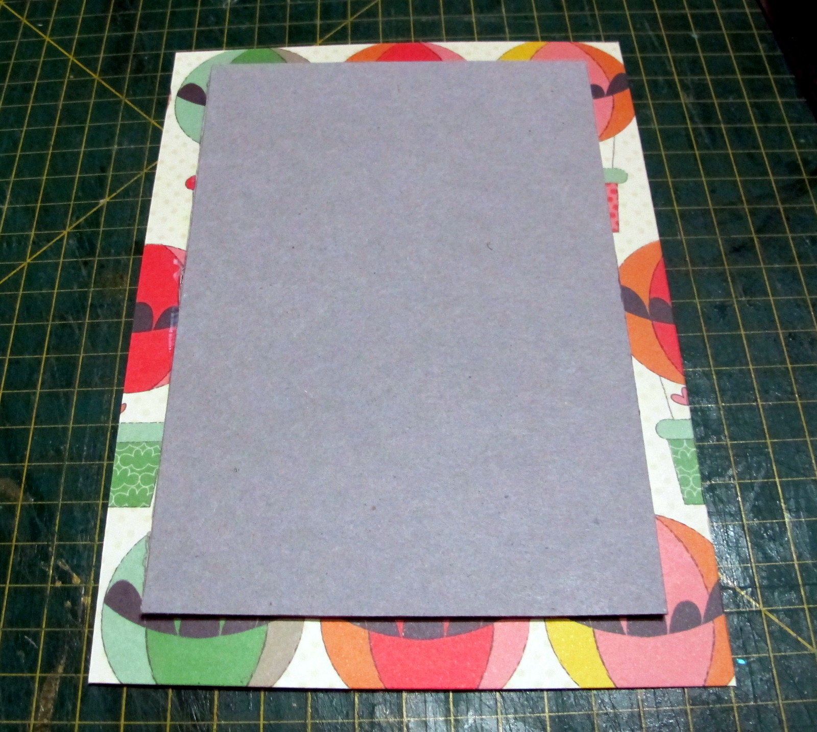 Para cortar o chipboard para a capa e contra-capa utilize o seu miolo dobrado como medida, acrescentando 0,5 cm. No meu caso, o miolo mede 11x16 cm e os chips com 11,5x16,5 cm.