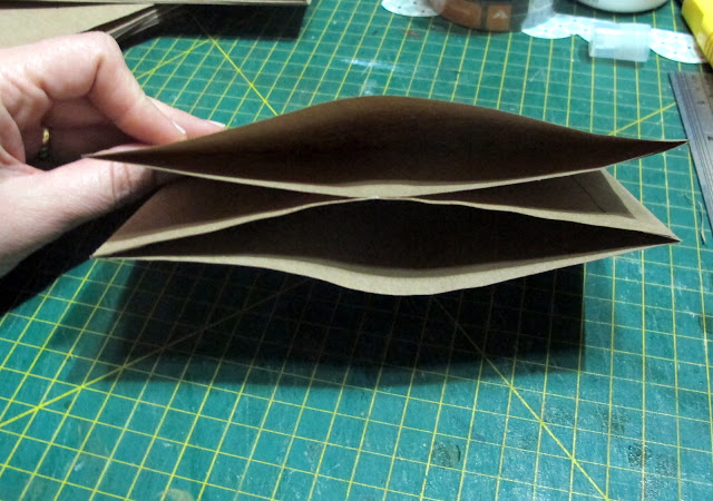 Em seguida, levante a tampa do envelope e refile as duas bordas juntas, cerca de 0,5 cm.