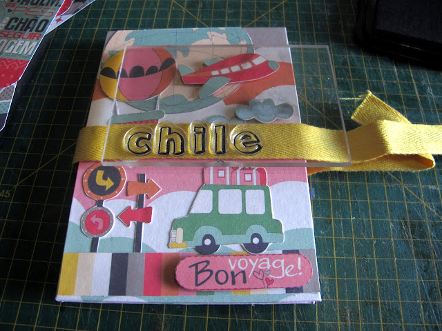 Para identificar o local da viagem, optei por utilizar carimbo e Stazon. Usei